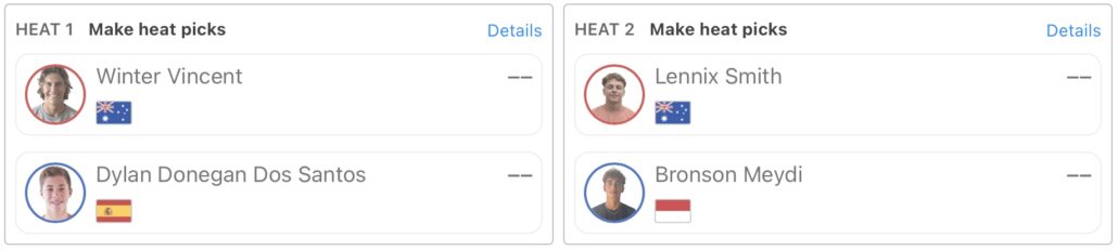 またMENSセミファイナルではインドネシアのBronson Meydiが勝ち残っており、ヒート2でオーストラリアのLennix Smithと対戦する。