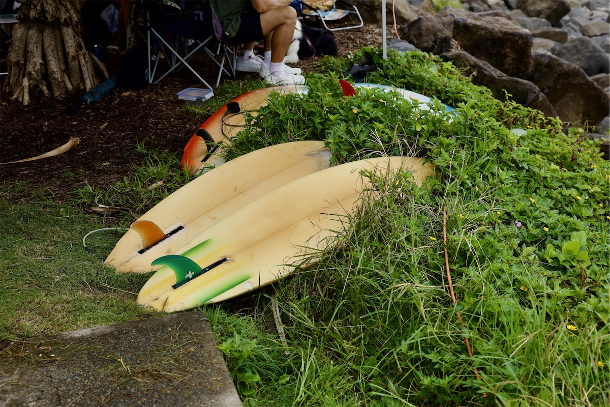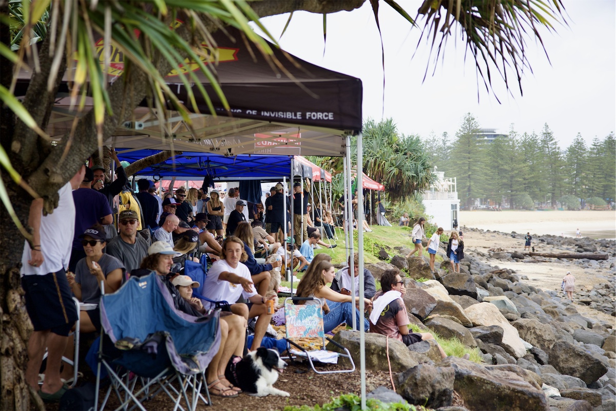 あいにく雨の空模様は続き、小波のコンディション、ピーカンの太陽を浴びながらバーレーの丘の芝生でまったりゆったりとはいかなかったが、大会会場にはフードバンやアイスクリームバンの出店もあり、ビールを片手に仲間たちとの会話やサーフ談義で盛り上がっていた。
