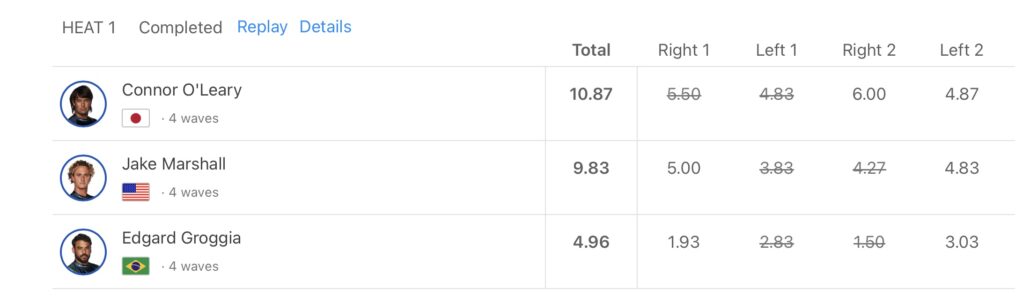 迎えるクォーターファイナルではヒート3では、またしてもワールドチャンプのItalo Ferreiraと対戦予定。
