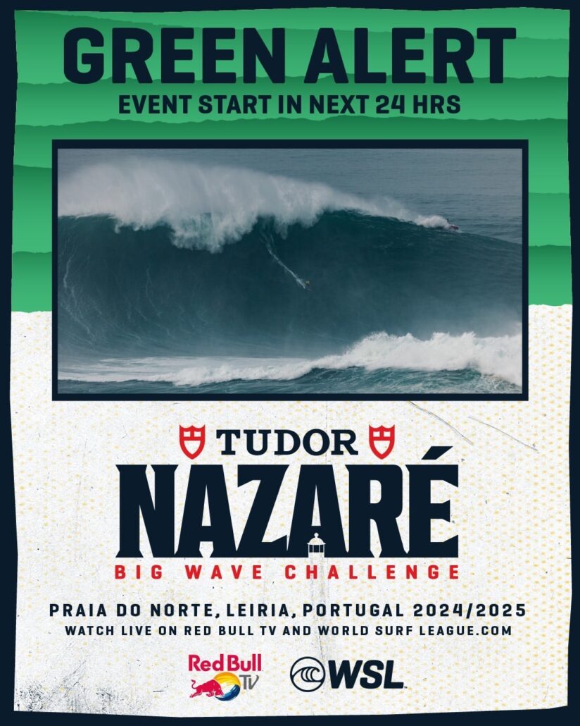 海のエベレストの異名を持ち、世界最大級のビッグウェイブが押し寄せる場所として知られるポルトガルのナザレを舞台にWSL主催のビッグウェイブ・ワールドツアー”TUDOR Nazare Big Wave Challenge”が開催を予告するグリーンアラートを発令した。