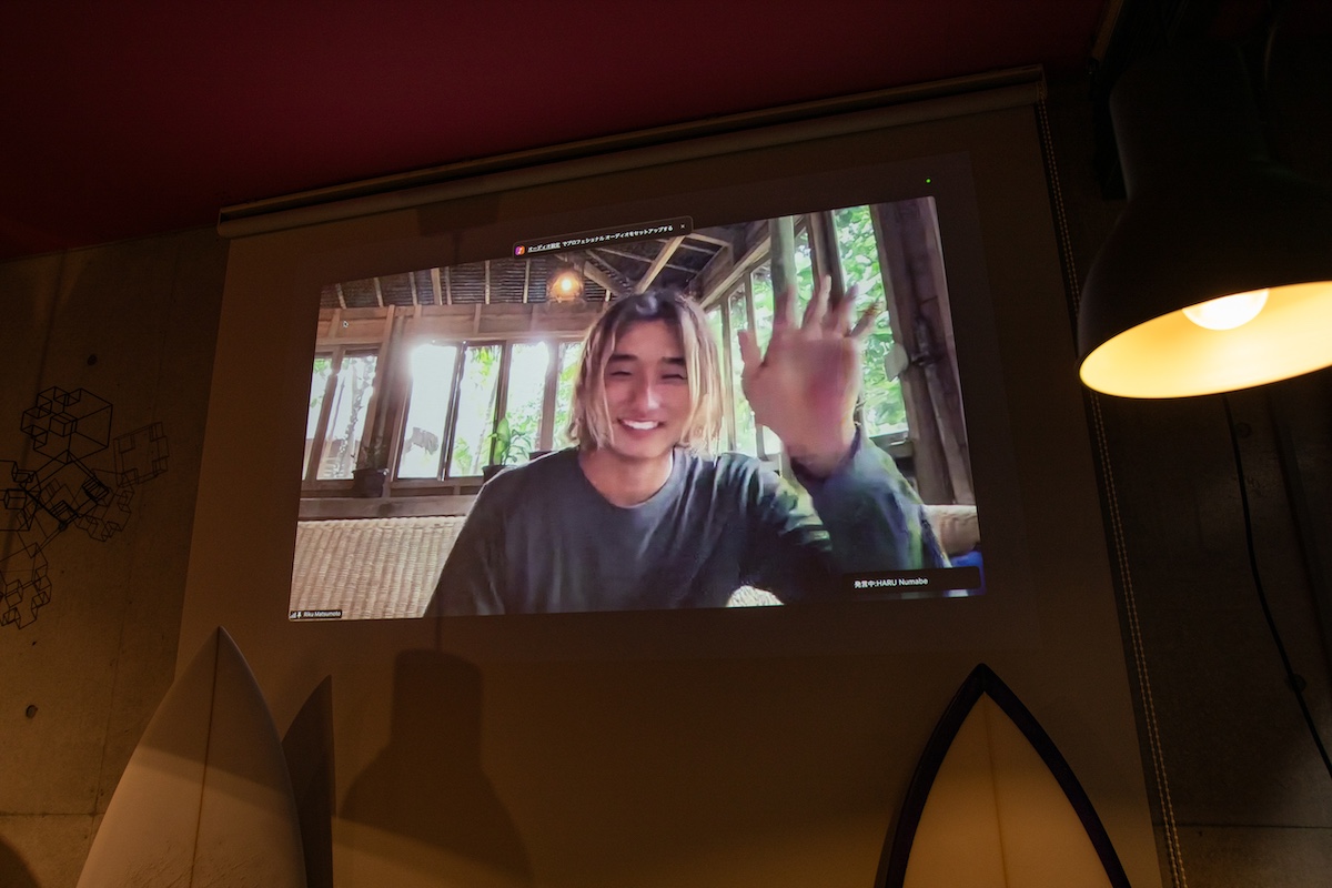 拠点とするメンタワイからZOOMでの参加となったが、DA HUI Backdoor shootoutのパイプラインでの貴重なエピソードをシェアしてくれた松本浬空。「パイプラインという特別な場所での一本をクリップに残すことができて嬉しい」と語り、パイプラインで一本を残すために賭けるも情熱の熱さに、会場は息を呑んだ。