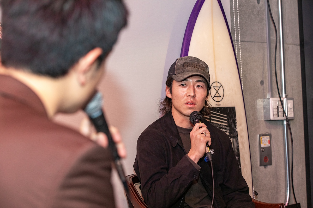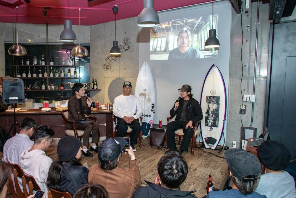 日本が誇る世界に認められるスタイルマスターであり、フリーサーファーでもある小林直海をはじめ、モデルとしても注目を浴びる平原颯馬、そして、DA HUI Backdoor shootoutではGerry Lopezを想起させるスタンディングバレルをパイプで魅せて世界のサーフシーンを震撼させた松本浬空といった個性豊かなJULY WETSUITSチームの3名が、それぞれの視点からJULYの魅力を語りつつ、昨冬のシーズン中の出来事や、JULY WETSUITS加入時に制作された映像作品にまつわる裏話など、貴重なエピソードが次々と飛び出し、来場したファンたちを釘付けにした。