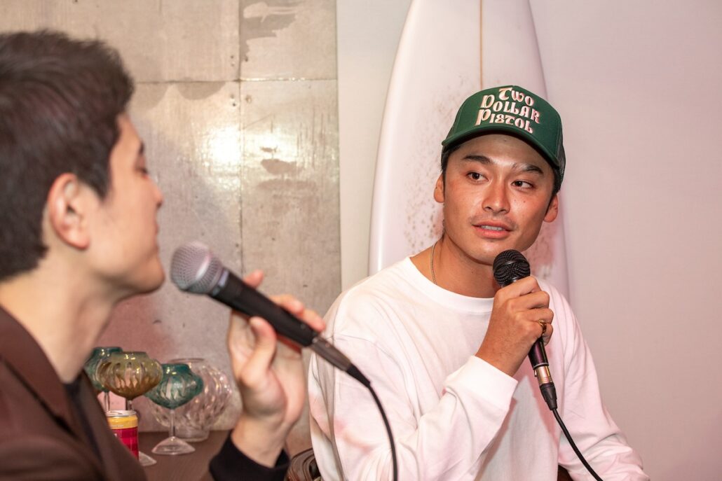 東京、渋谷のHandy SHOPにて開催中の”JULY WETSUITSポップアップ・ストア”にて、平原颯馬のJULY WETSUITSチーム加入を祝した小林直海、松本浬空(メンタワイからZoomでリモート参加)とのスペシャル・トークセッション”BEHIND THE SCENES”が行われた。