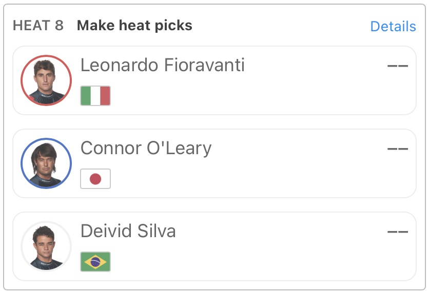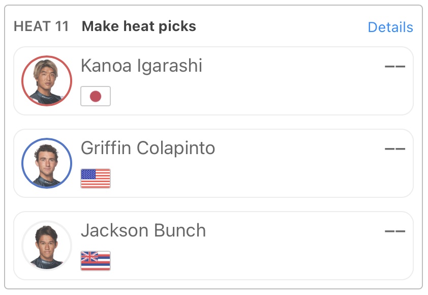 五十嵐カノアがヒート11でGriffin ColapintoとJackson Bunchと対戦予定となっている。