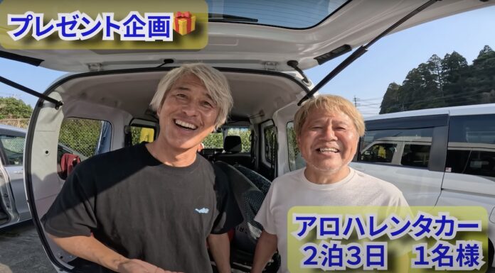 「今回は大人プロサーファーと行く宮崎サーフトリップにキラーサーフのお客様たちと一緒に2泊3日ツアーです。宮崎の海でサーフィンを楽しんだり、宮崎郷土料理を美味しく食べたり、夜はお酒を呑んで楽しみました。そこで宮崎アロハレンタカーから視聴者の皆さんへレンタカー3日間をプレゼントいたします。チャンネル登録されている方でコメントの内容が1番面白かった方に当たりますので、皆さんどしどしとコメントを書いて送ってください!」
