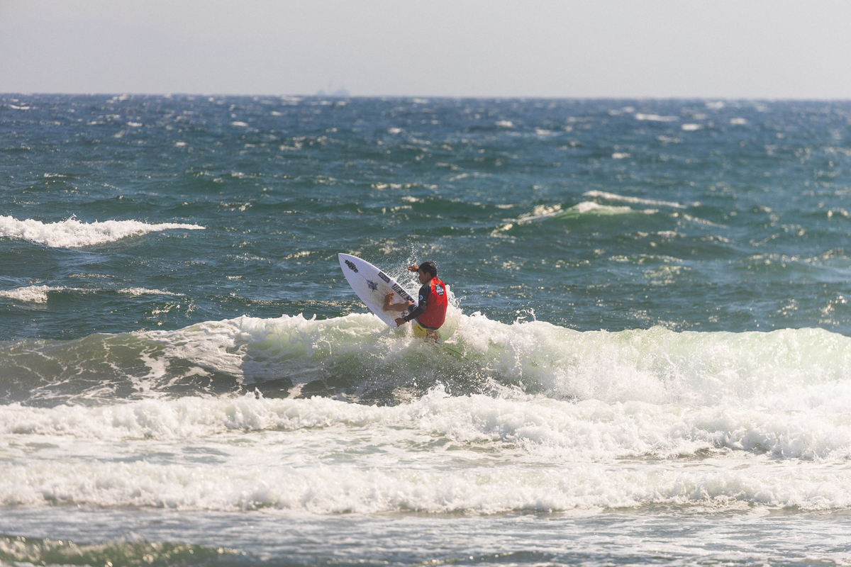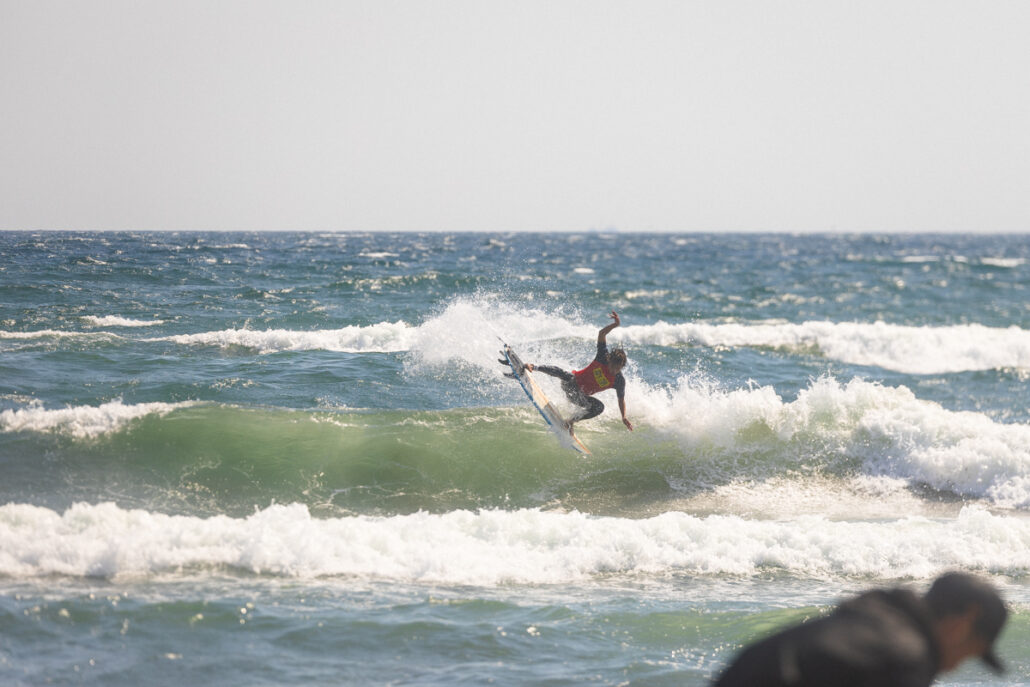 年齢制限の条件を満たしていればプロサーファーであっても出場可能なSMジュニア。今回のファイナルで唯一アマチュアでありながら、他の同世代のプロサーファーたちを倒してファイナルまで駒を進めたのは静岡3区の久保池大和。SM Junior 4th, Yamato Kuboike.
