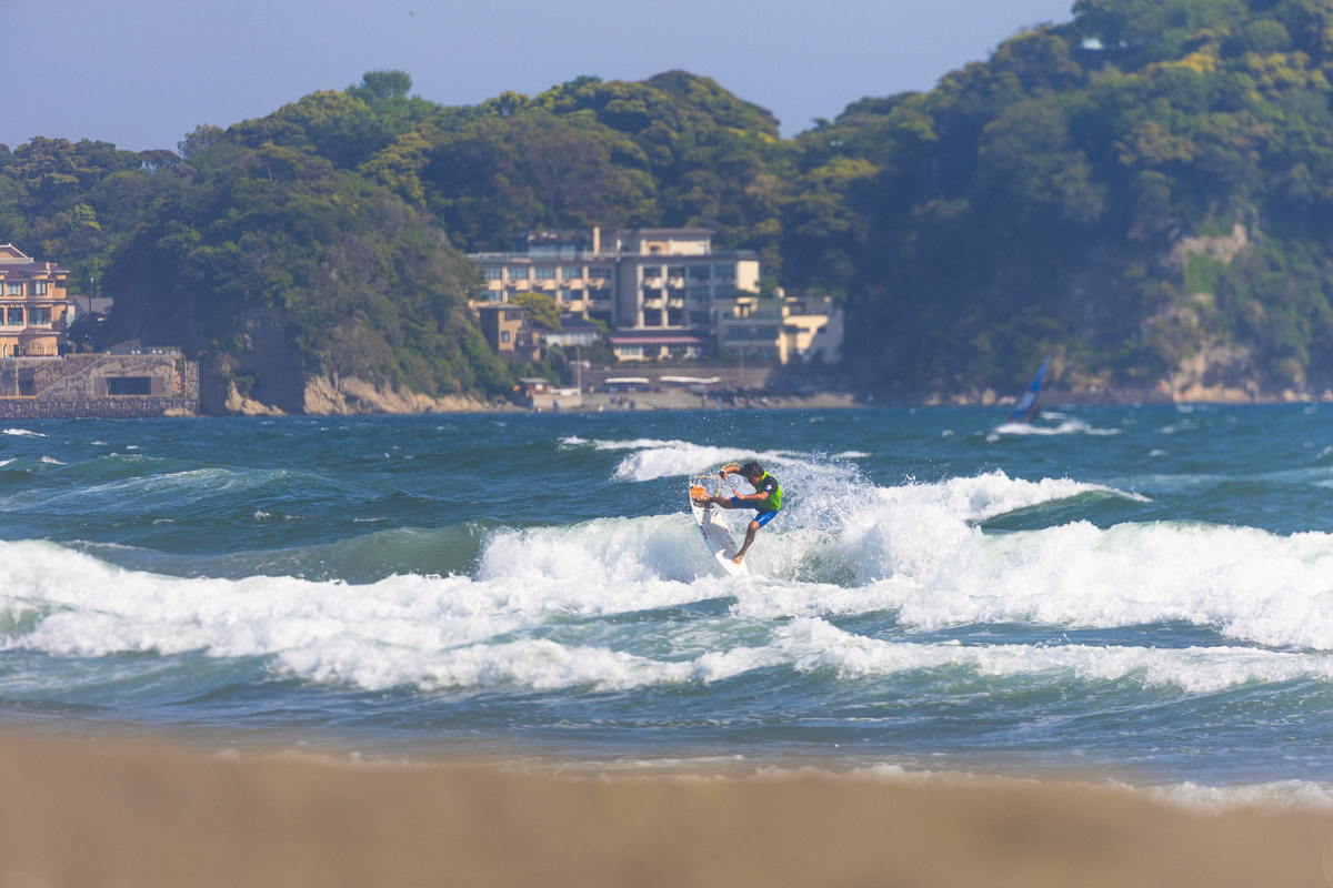 セミファイナルでは思うようなライディングができず、2位でラウンドアップしたことが彼にとっては悔しかったに違いない。その直後に会場横の海にダッシュで飛び込んで気合いの練習を決行し、ファイナルではフィンズフリーやエアリバースとずば抜けたパフォーマンスを披露して見事日本一のプロジュニアの座を獲得した足立海世。まさにハワイの10ftオーバーから鵠沼の小波までオールラウンドに乗りこなす文句なしのプロジュニア日本チャンプが誕生した。SM Junior winner, Kaisei Adachi.
