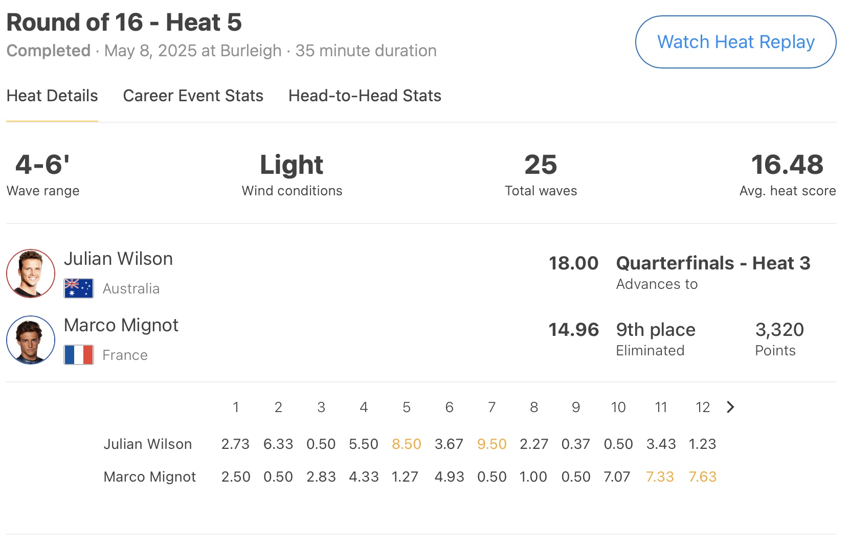 元CTベテランであるJulian Wilsonは、さすがのパフォーマンスを披露して堂々たるクォーターファイナル進出を果たしたのだった。