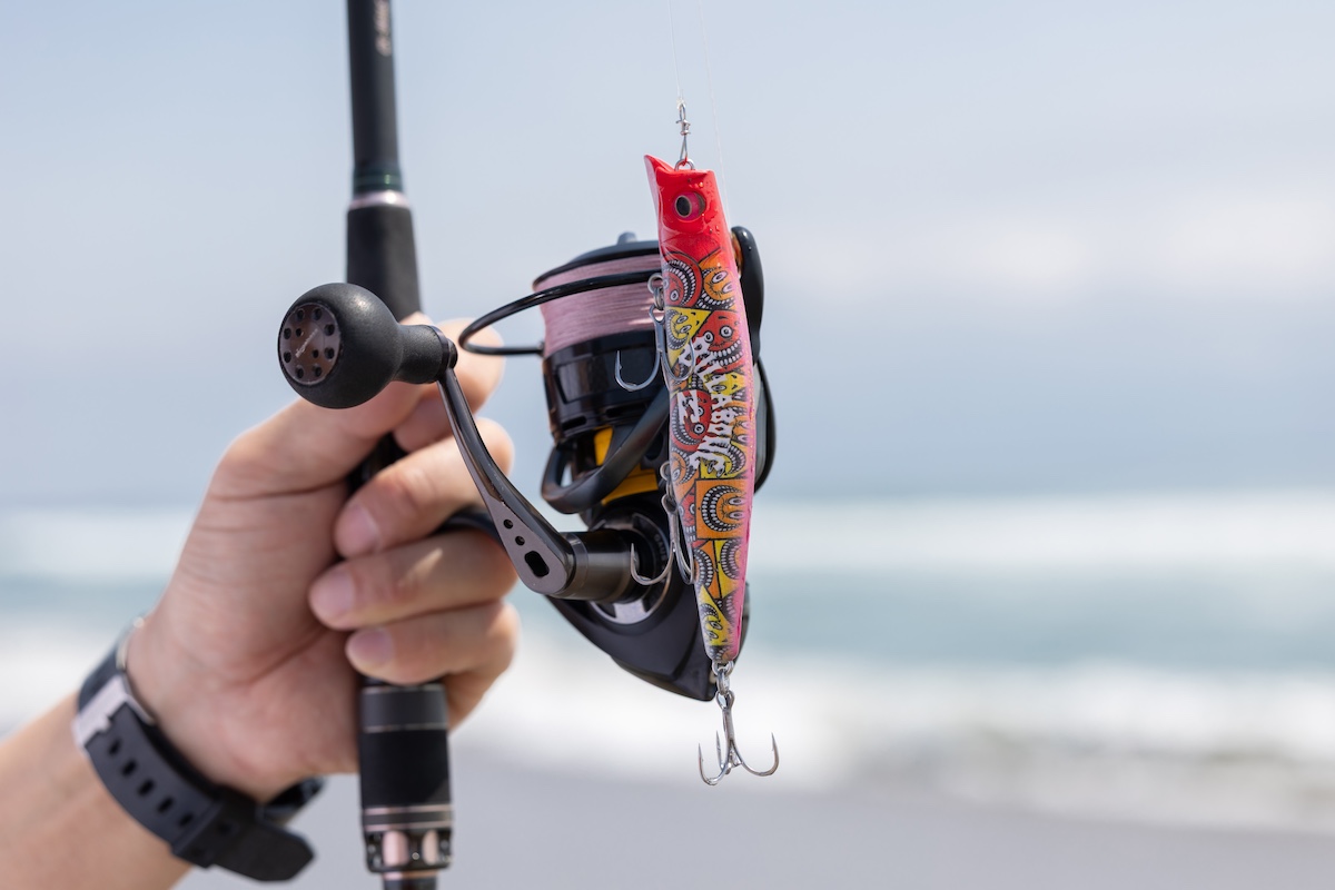 YOSHI47によるアートが施されたウェアとルアーは、このコラボレーションだけで手に入る特別限定仕様となっている。