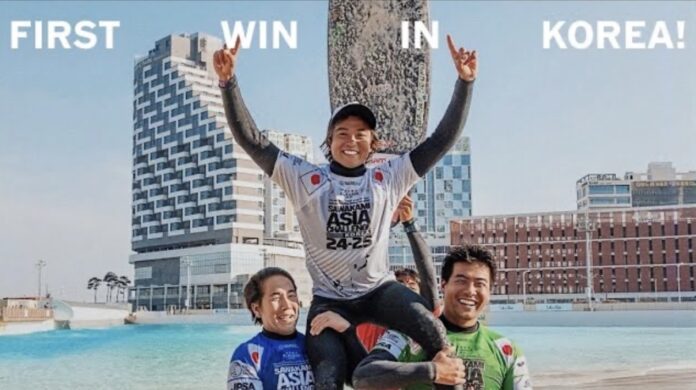 「Sリーグ・コリア・ウェーブパーク大会で優勝できて最高に嬉しいです!韓国のウェーブプールでサーフィンするのは今回が初めてでしたが、想像以上に素晴らしい体験でした!今回もCyber wetsuitsのフルスーツが動きやすく、Lost Surfboards Stub Driver 3.0(Black Sheep製) に乗り、調子は最高でした!」