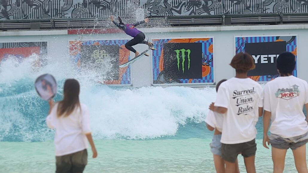 そんなLady Birds予選ラウンドの後に、DAY1を締めくくるタイミングで行われたBottle Rocketsではヒート2に昨年準優勝のプロスケーター×プロサーファー枡田雷治、そしてサプライズ招待選手として急遽参戦が決まった弱冠12歳のサーファー×スケーター伊波洋介が登場!