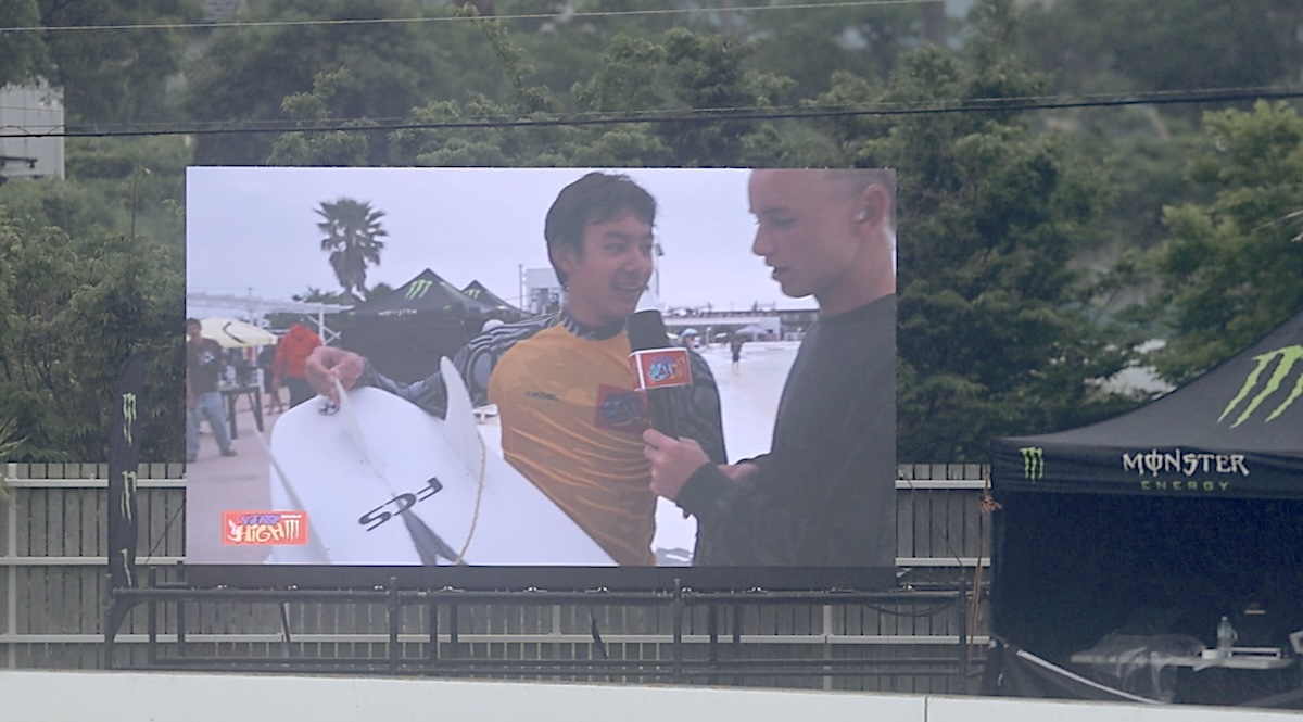 さらに、コンテストDAY1のLady Birdsのヒートが間も無く終わる頃に、McFlyの波でバックサイド・スティールフィッシュ・フルローテーションエアをメイクした映像がインスタグラム上で話題となっていた弱冠12歳の伊波洋介がサプライズなタイミングで急遽招待選手としてコールされて出場決定となった!