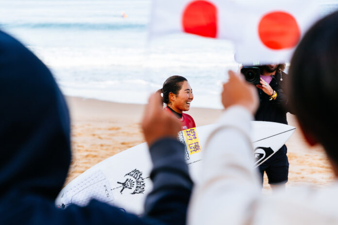 セット頭前後のクリーンなファンウェイブに恵まれた中、注目の日本代表選手たちの活躍は、MENSの安室丈と岩見天獅がラウンドオブ64へ、WOMENSの野中美波と佐藤季、都築虹帆がラウンドオブ32へ駒を進めた!