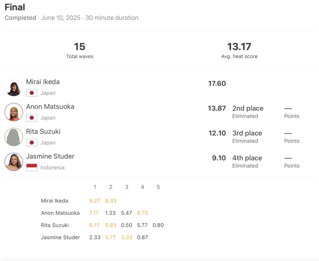 インドネシアのクルイを舞台に開催中のQS1000″Krui Pro Junior”が、現地時間と日本時間の6/12(木)に無事終了となった。