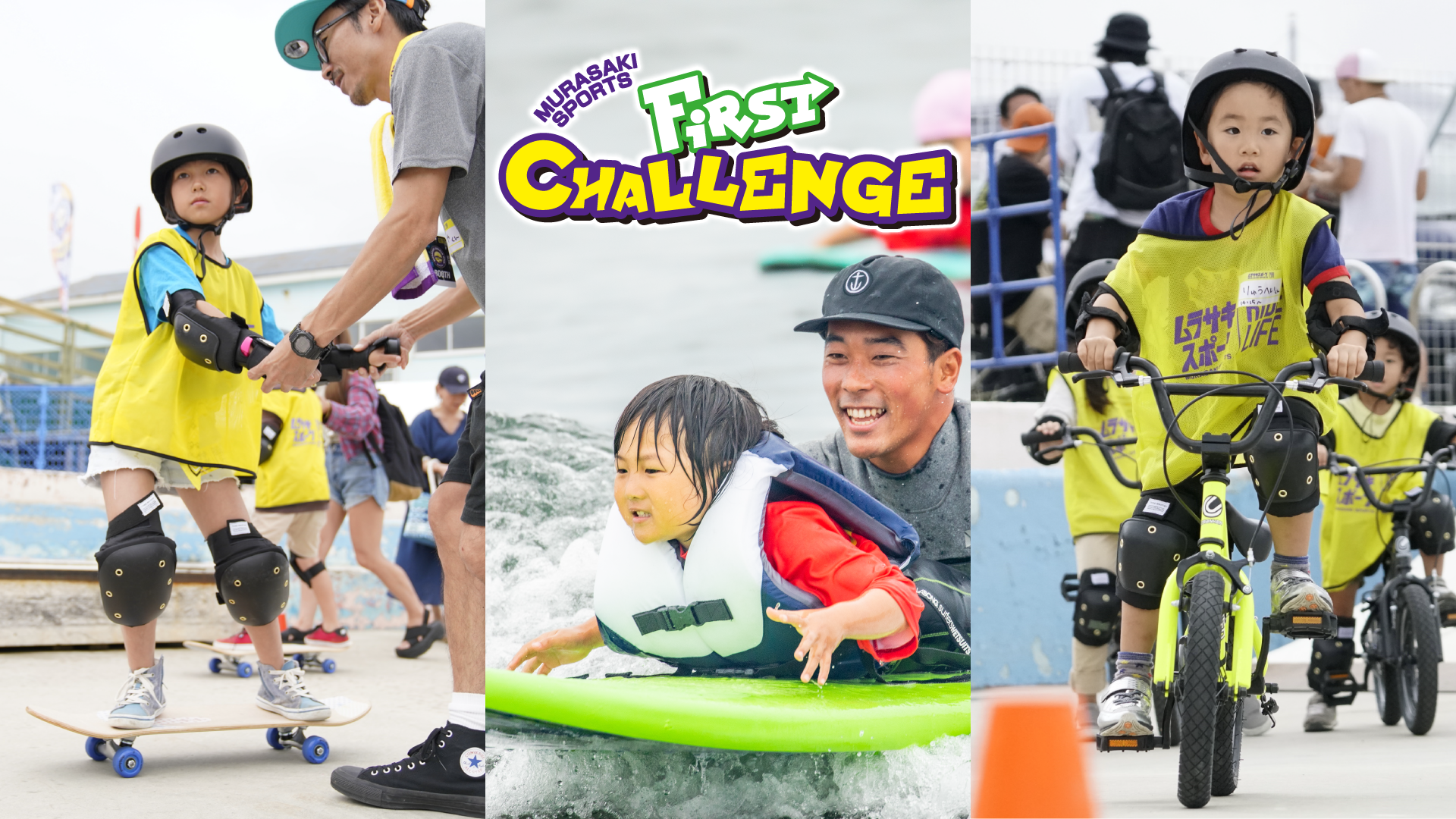 大好評の初めてサーフィン、スケートボード、BMXにチャレンジするキッズを対象とした体験型イベント。必要な用具は全て無料レンタル可能。安心してお気軽に参加頂けます。トッププロに教えてもらえるビッグチャンスもあり!