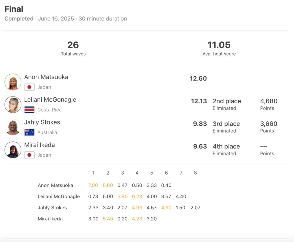 MENSはReef Heazlewoodが優勝を果たし、WOMENSではファイナルで決め手となる7.00ptを1本目からスコアしてリードをキープし続けた松岡亜音が見事2023年に引き続き2度目となるクルイプロでの優勝を勝ち獲った!