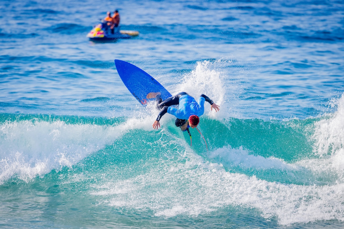 強いオンショアによってショルダーの続くポテンシャルの高い波を掴むのが難しいトリッキーな波となった中でも、クオリティーの高いターンを繰り出してコンテストMCたちを唸らせた大原洋人は、Morgan CibilicとPeterson Crisantoといった2名のCTサーファーを抑えて2位のポジションでラウンドアップを果たした。