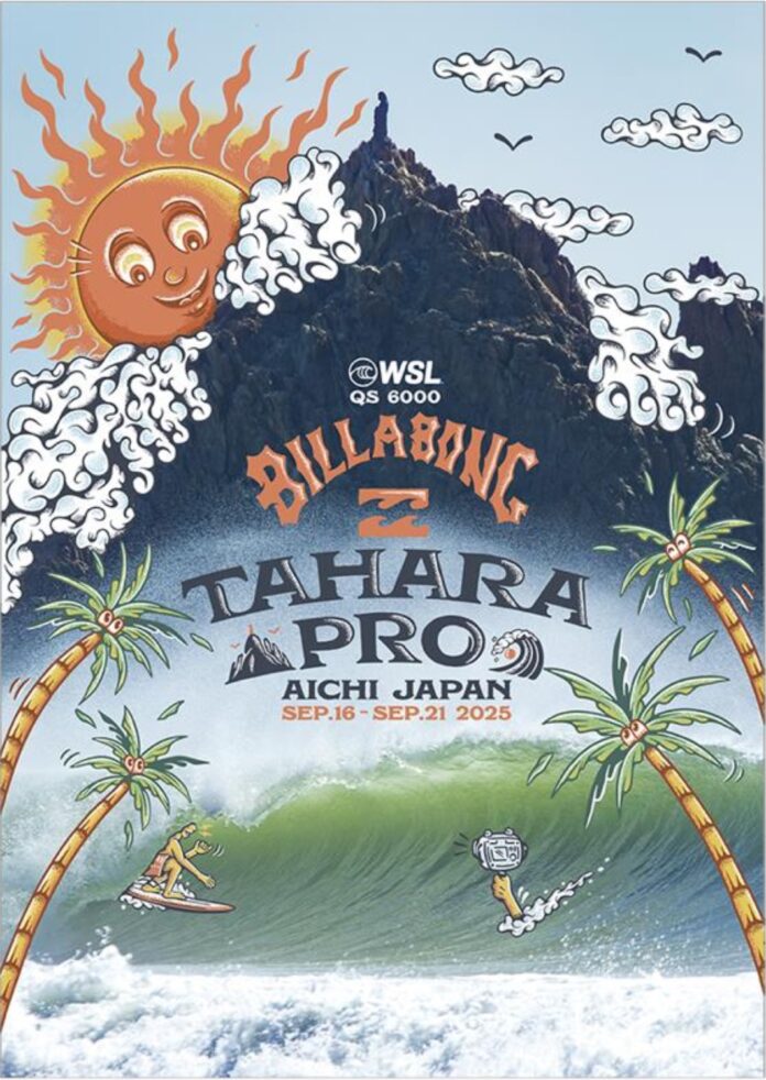 「WSL・クォリファイシリーズ(QS6000)の”2025 BILLABONG TAHARA PRO”が、2025年9/16(火)から9/21(日)までの6日間に渡り、愛知県⽥原市⾚羽根町⼤⽯海岸において開催となります。2026年、第20回アジア競技⼤会(2026/愛知・名古屋)のサーフィン競技会場となる場所である⽥原市で7年ぶりに開催される⼤会は、世界トップ選手が集うWSL・クォリファイシリーズ(QS6000)という高いグレードであり、⽥原を拠点に活躍する選手をはじめ、日本やアジア・オセアニアを中心に、多くの有力選手がポイント獲得を目指し参戦すると予想されます。アマチュア組織である公益社団法人日本サーフィン連盟(NSA)と、WSLが本格的にコラボレーションする画期的な⼤会でもあり、日本サーフィン界にとり今後につながる重要な位置付けの⼤会となります。」