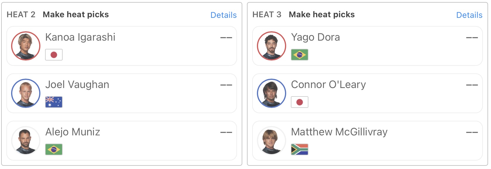 注目の五十嵐カノアはヒート2でJoel Vaughan、Alejo Munizと対戦。