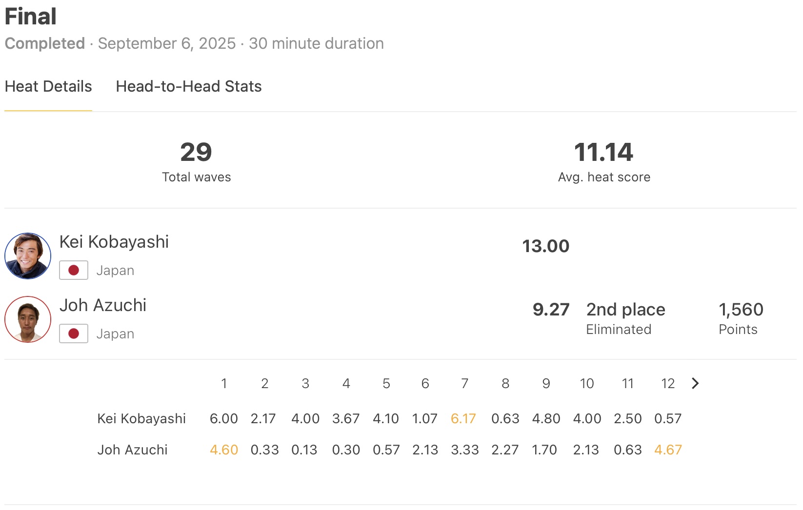 「CSクオリファイしてませんが、来年のランキングから何戦か出れていて、もし次のポルトガル戦、ブラジル戦に出られたら出る予定でいるので、そこへ向けての自信につながったと思います。今日の試合はあまりプレッシャーを感じずにすべてヒートに挑むことができたので、この優勝に繋がったのかなと思います。御前崎はすごく好きなところで波もいいし、すごく楽しめたとおもいます。CSへ来年クオリファイする事と、CSでクォーターファイナル以上行くことが、今年の目標です。もしCSへ出れたらそこを目指し頑張ります!暑い中たくさんの方々に試合を観戦していただき、そして5日間暑い中運営してくださったスタッフの方々、ローカルの方々、ありがとうございました。この後も試合が続きますので、応援お願いいたします!」