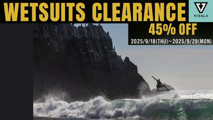 9/18(木)から9/29(月)までの期間限定で、対象となるISSLA wetsuitsが45%オフとなる決算セールがVISSLAオンラインストアと直営店にて開催中!