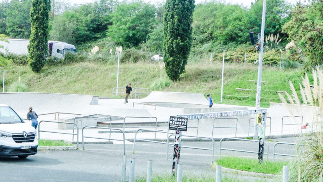 ストアを出ると、目の前の道路を挟んで向こう側に無料のコンクリート・スケートパークが。