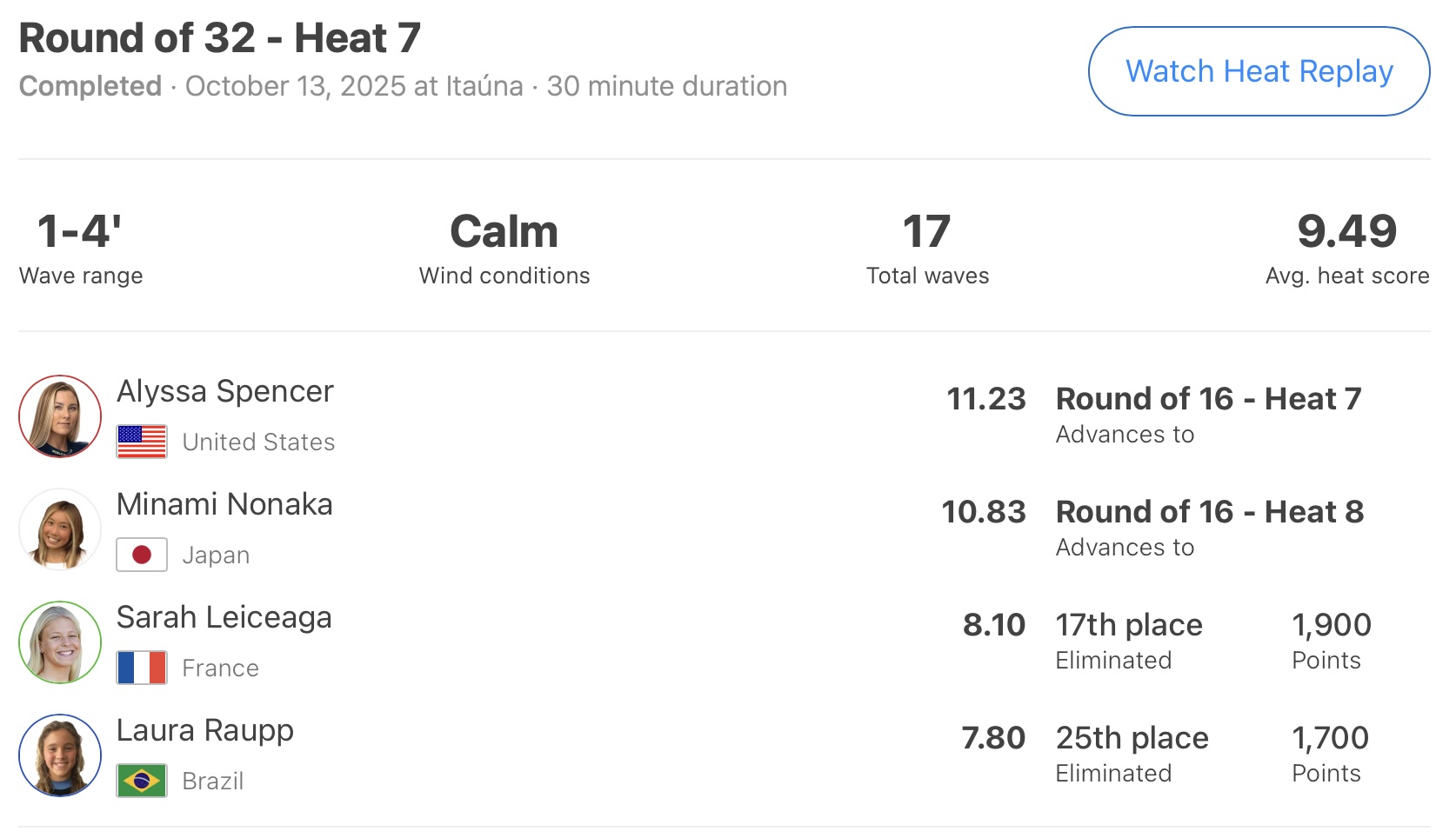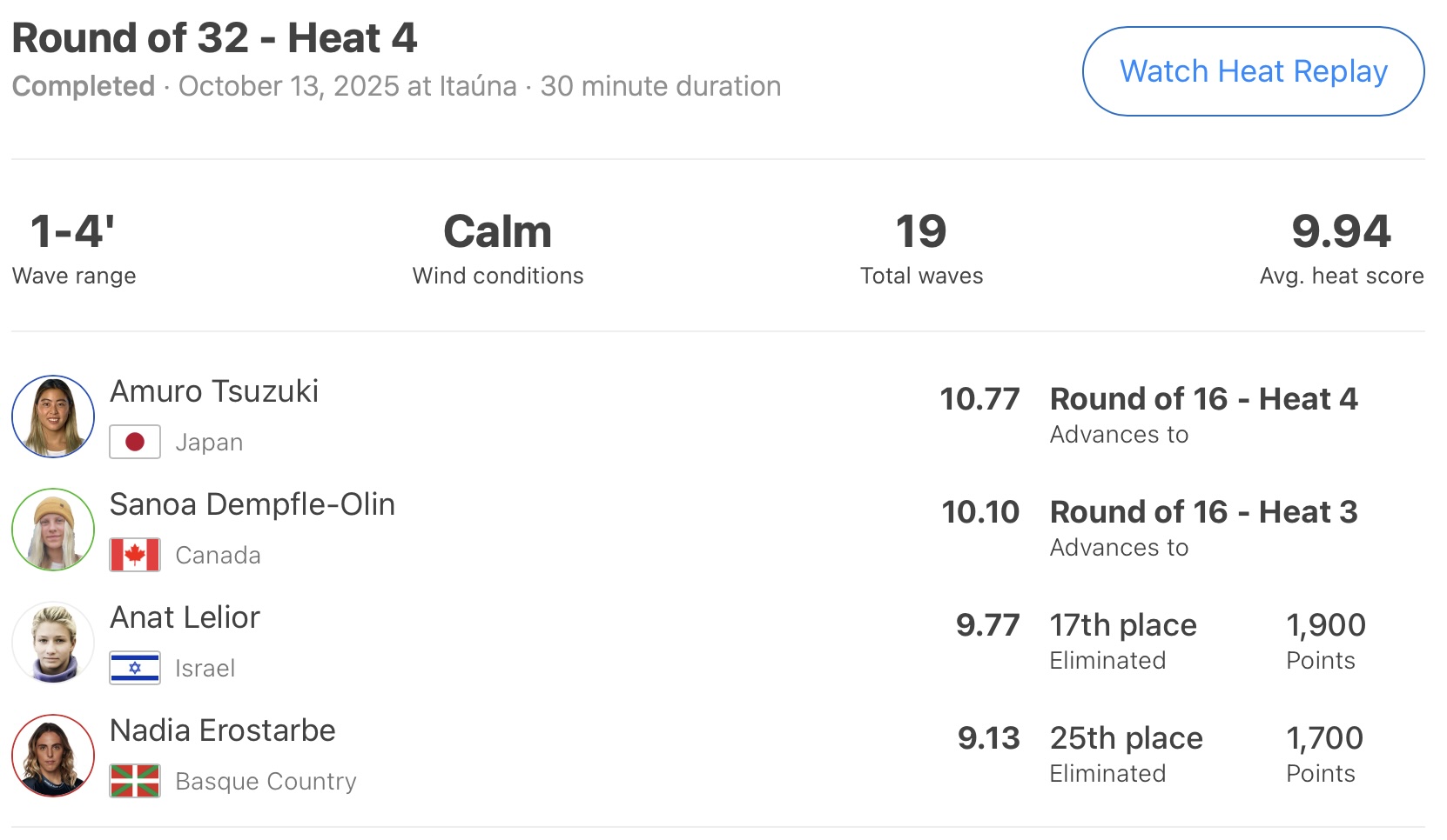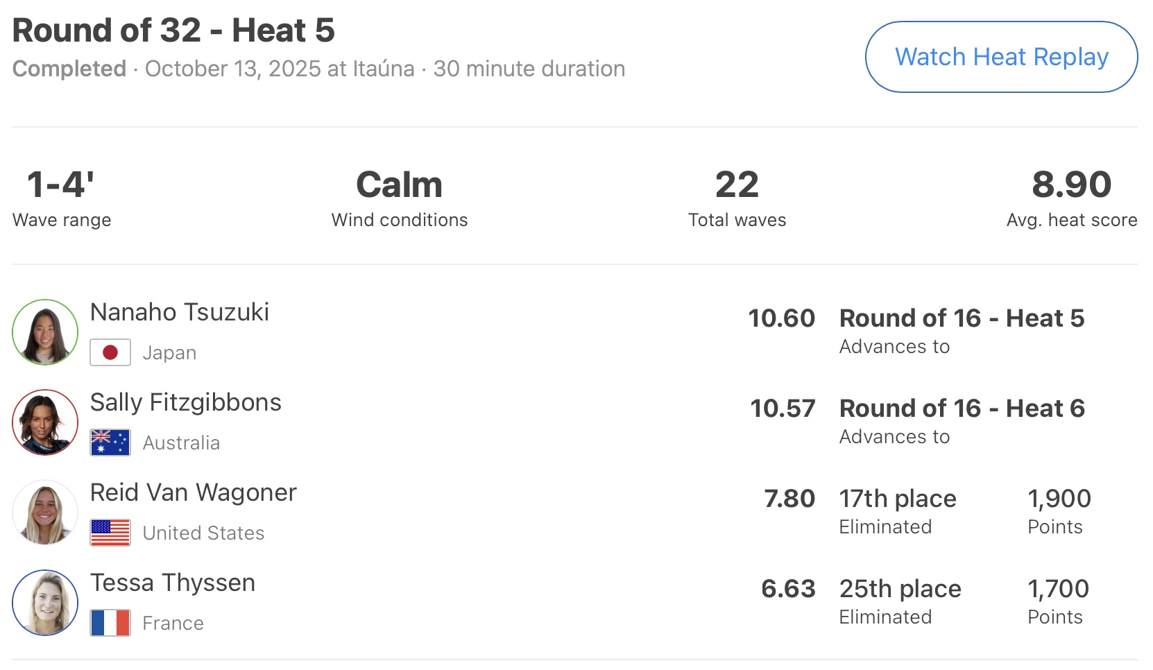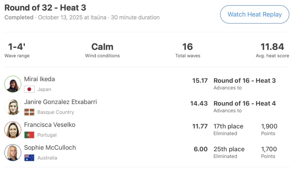 この日は行なわれなかったラウンドオブ32の最終ヒートとなるヒート8に出場予定の西慶司郎、そしてWOMENSベスト16まで勝ち上がっている池田美来、都筑有夢路、都築虹帆、野中美波といった残る5名の日本代表選手たちのさらなる快進撃に期待したい!!