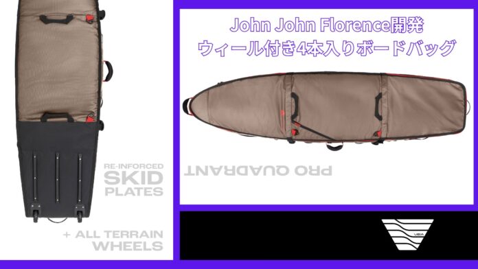 そんなお悩みを解消するべく、今回ここでご紹介したいのが、世界中を旅する3×ワールドチャンプJohn John Florenceとの共同開発により他にはない高性能なプロダクトを開発するVEIA SuppliesからリリースされたJJFウィール付き・4本入りサーフボード・トラベルバッグ(John John Florence Wheeled Four Board Travel Surfboard Bag)である。