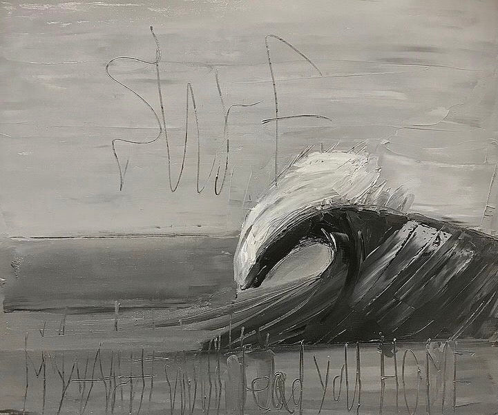 「海、波、surfをテーマに描いた油彩の絵画展です。海に入る、波が来るのを待つ、そして波に乗る。その感覚、移りゆく波の表情、色、輝き。ビーチからの眺め、その全てが僕にインスピレーションを与えてくれる。それから描きたくなるまで暖める。