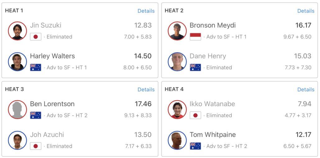 準優勝を果たした20歳のBen Lorentsonは今大会の好成績によりQSオーストラリア/オセアニア・ランキング10位から4位へとジャンプアップを果たした。