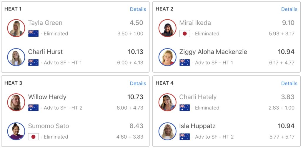 「Isla Huppatzは親友の一人で、彼女は本当に素晴らしいサーフィンをしていたから、私もベストのサーフィンをしなくてはいけないと分かっていました。最初は少し不安だったけど、最終的にあの小さなバレルを捉えてリードできたのは良かった」
