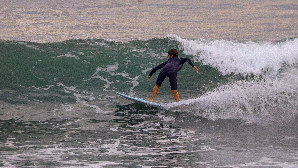 11/11(火)はサイズダウンで朝を迎えたが午後には予想外にも徐々にうねりが入りはじめ、そのグランドスウェルがピークに達した11/12(水)は1日を通して湘南全域に渡りオフショアの頭前後のファンウェイブに恵まれた。
