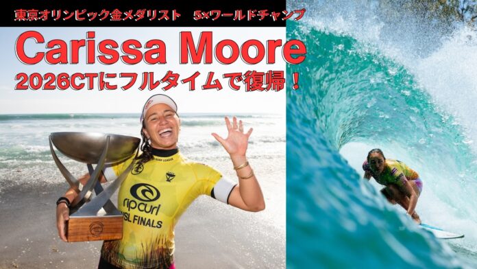 東京オリンピック金メダリストであり、5×ワールドチャンプでもあり、晴れて新米ママとなったCarissa Mooreがワイルドカードを獲得して2026年CTにフルタイムで復帰することがWSLより正式に発表された。