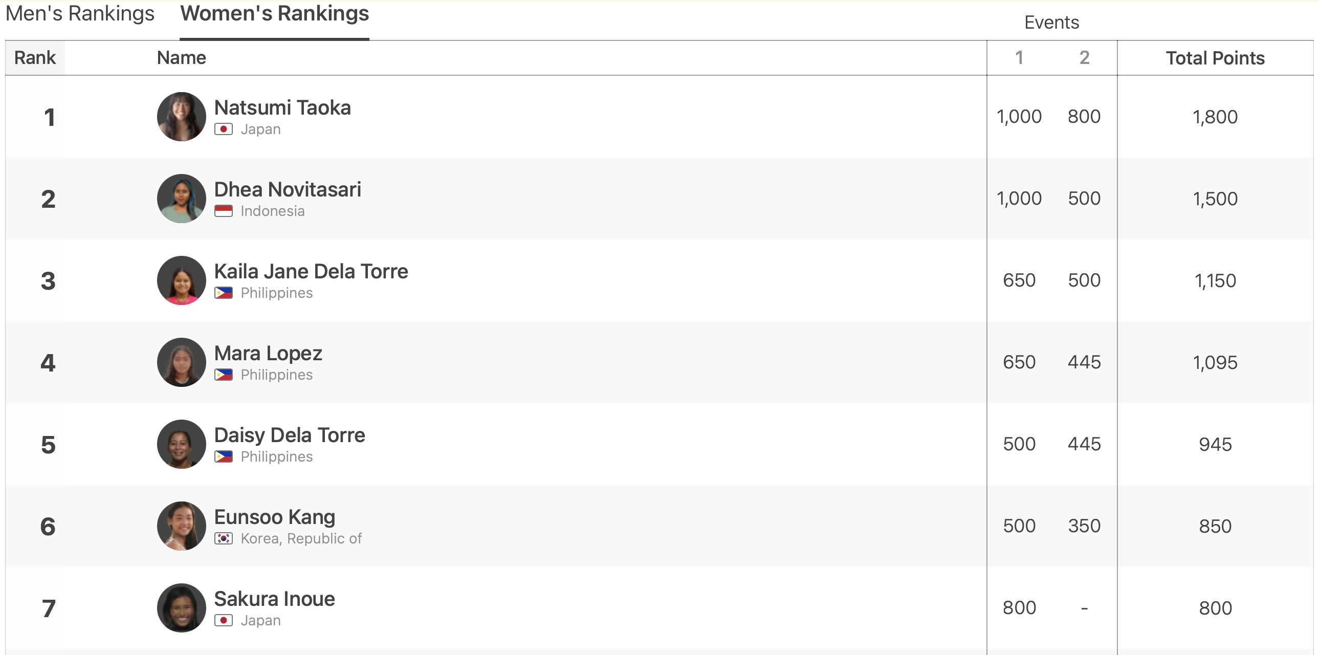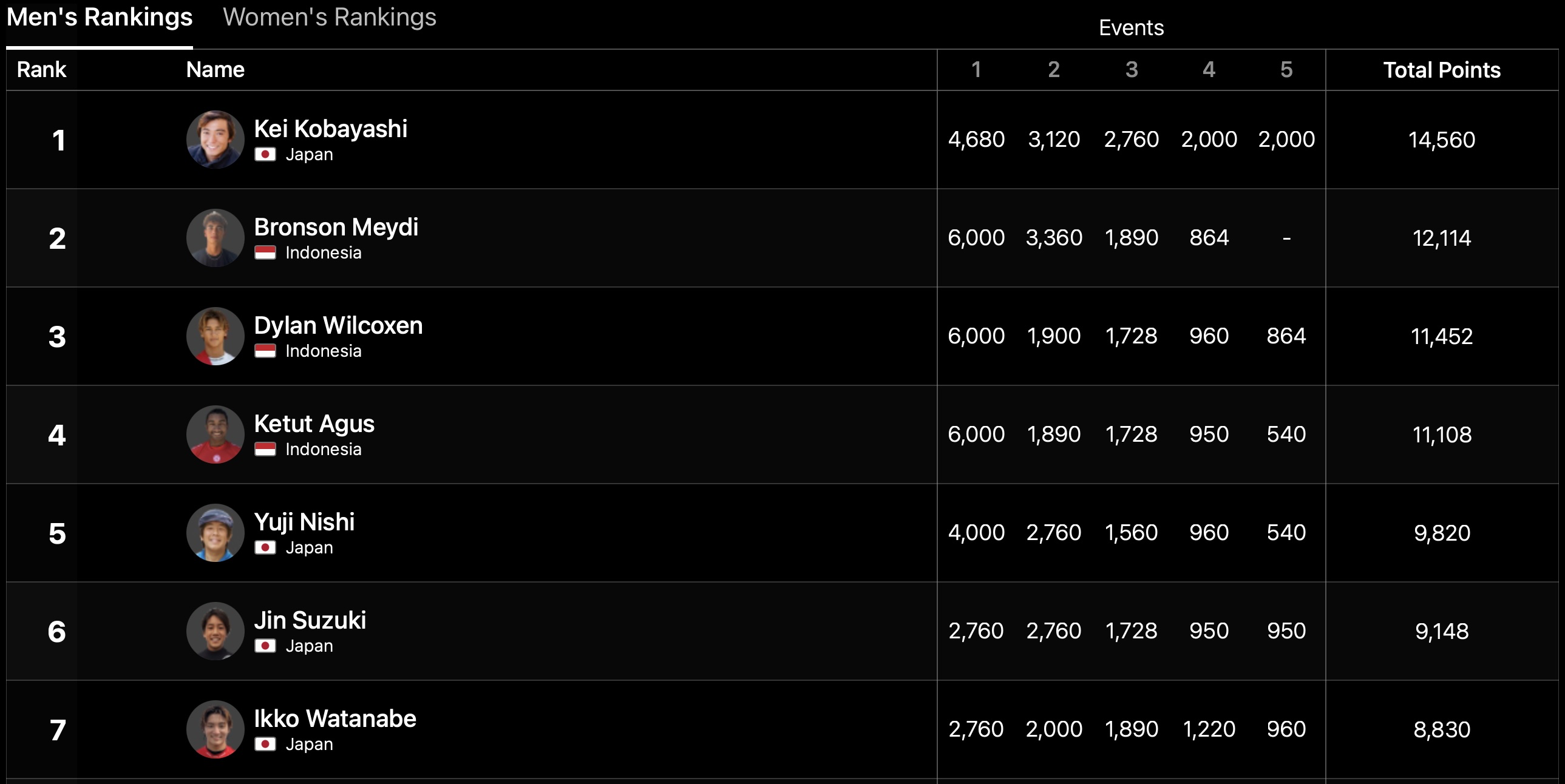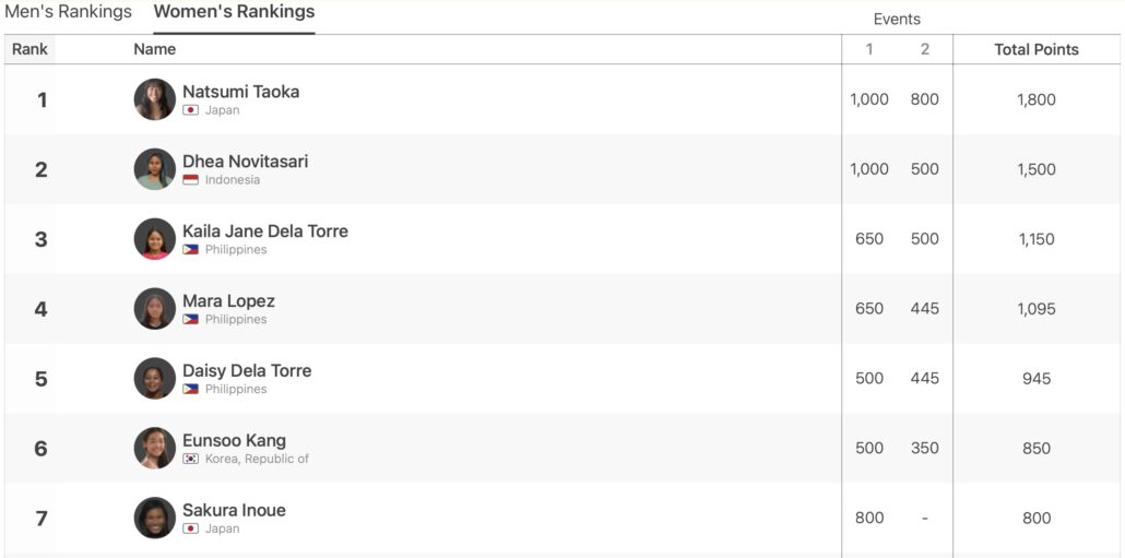 田岡なつみは今回の優勝で自身のキャリアにおける通算9度目のロングボードツアー優勝決め、QSアジア・ランキングで首位に返り咲いた。