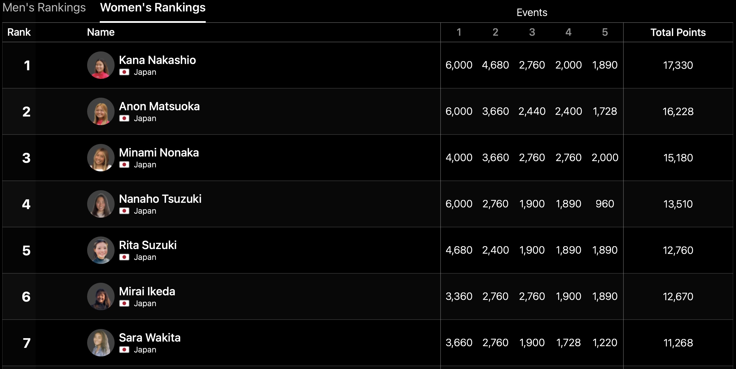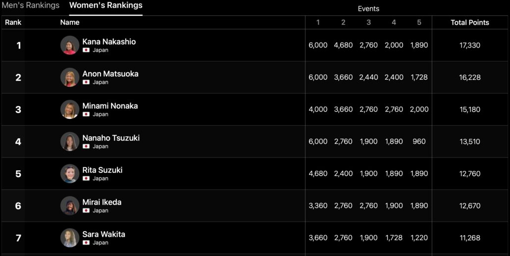 注目の日本人選手たちの活躍は、QS4000 MENSで西優司、WOMENSで野中美波が優勝!