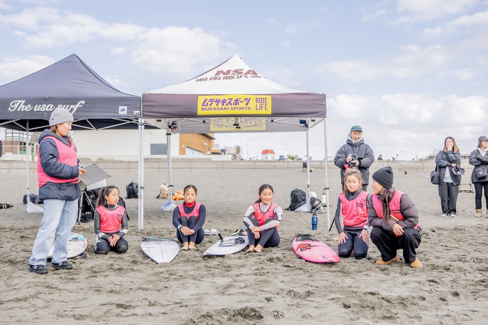 北は宮城県仙台から南は宮崎県まで、全国から女子中学生サーファーが集まった中、憧れのプロサーファーたちと貴重な時間を共有しながら技術とメンタルの両面から学びを深めることができる貴重な1日となった。
