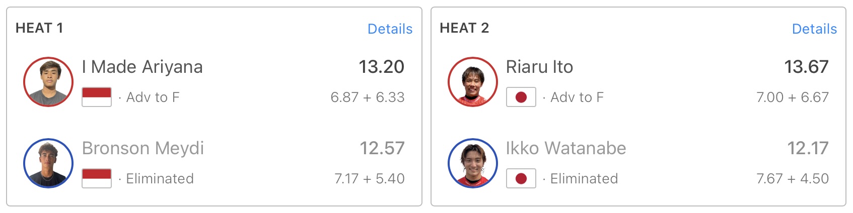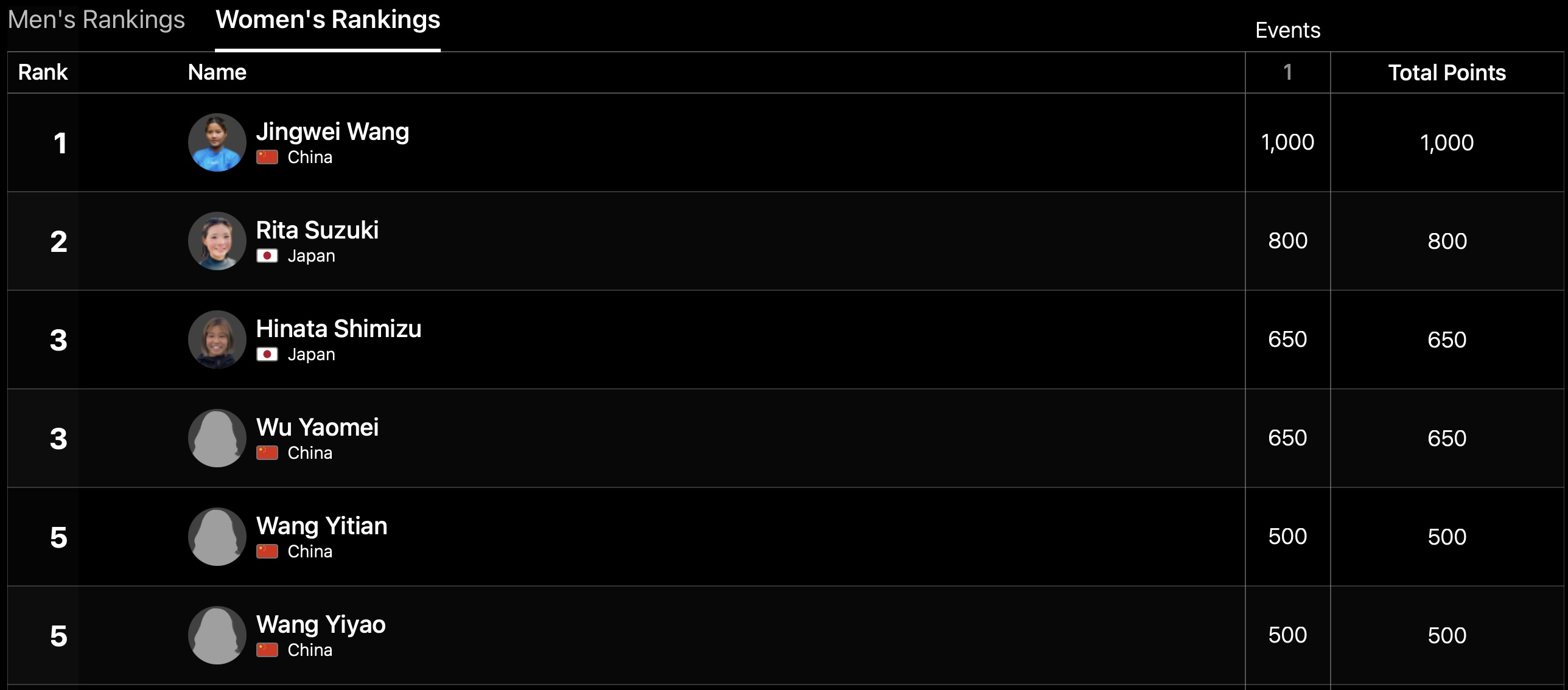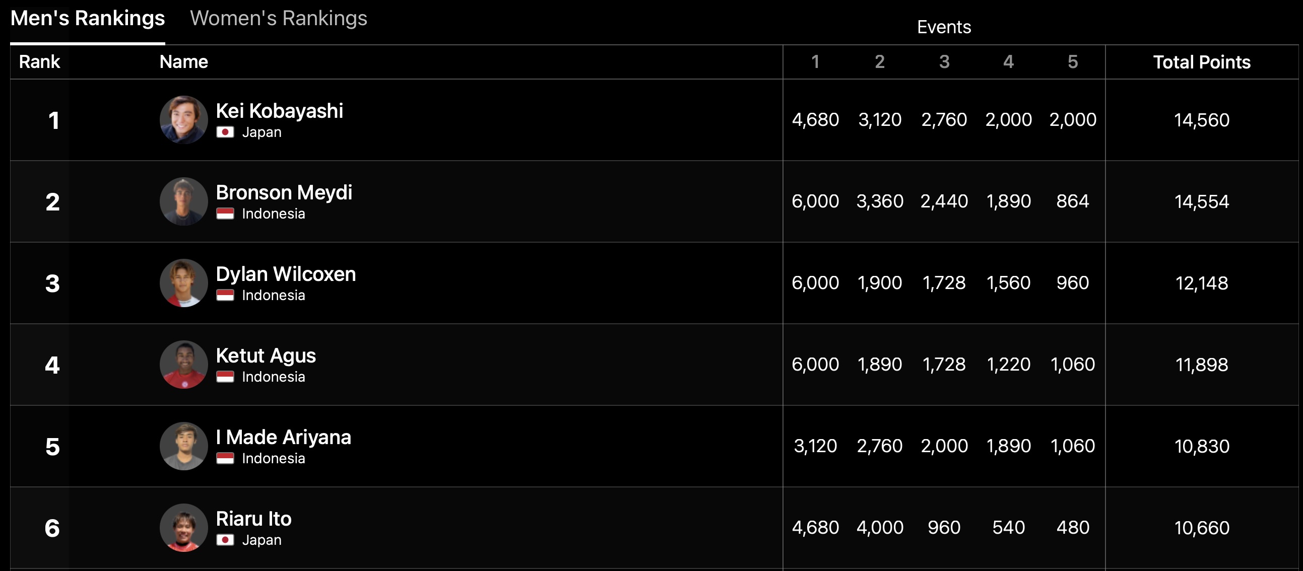 2位から5位まではインドネシア勢が占めており、6位には伊東李安琉がポジションしている。