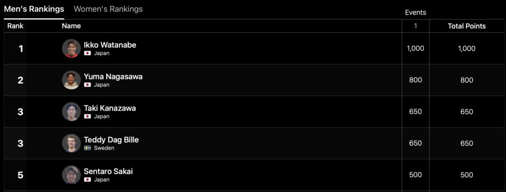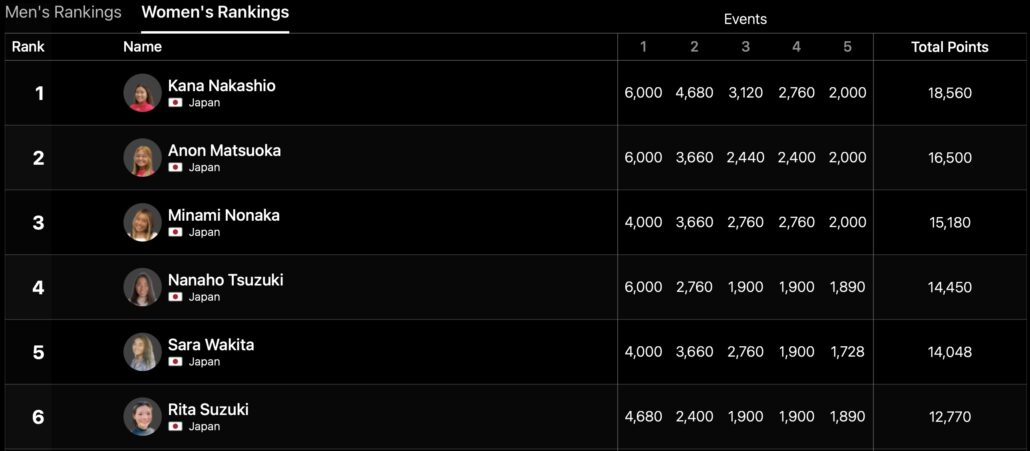 注目の日本人選手たちの活躍は、QS4000 MENSは伊東李安琉、WOMENSは脇田紗良、プロジュニアMENSは渡邉壱孔が優勝!