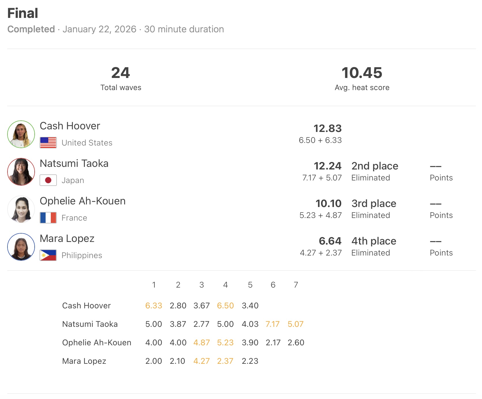 フィリピンのラ・ユニオン、ウルビズトンド・ビーチを舞台に開催されていたWSL主催のLQS1000″La Union International Pro”は日本時間と現地時間の1/23(金)にMENS、WOMENS共にファイナルまでを消化。