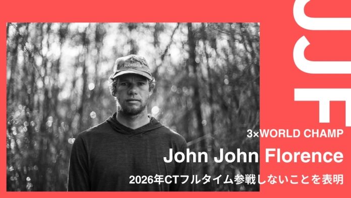 3×ワールドチャンプであり、WSLより2026年シーズンはCTにフル参戦することが正式に発表されていたJohn John Florenceが2026年CTフルタイム参戦しないことを表明した。
