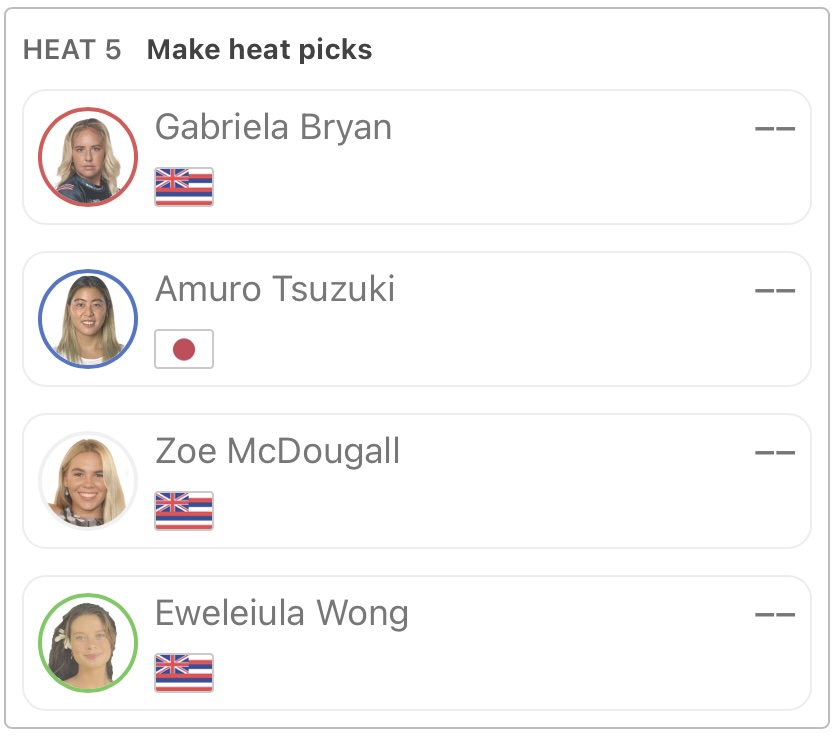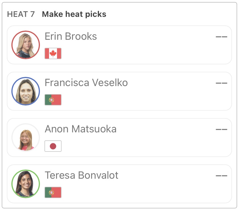 さらにヒート1に出場の中塩佳那、ヒート5に出場の都築虹帆もいい波を掴むことができず、このラウンドで姿を消す事となった。