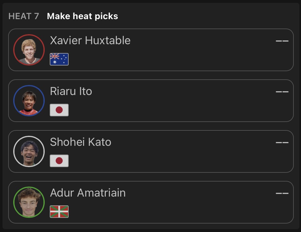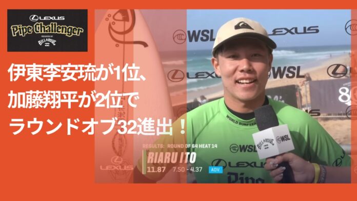 迎えるラウンドオブ32では伊東李安琉と加藤翔平が同じヒート7に組み込まれ、Xavier HuxtableとAdur Amatriainと対戦予定。
