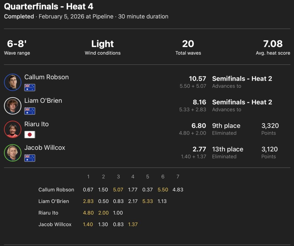 ハワイのパイプラインで開催中のCS第6戦”LEXUS PIPE Challenger”は、セットで6-8ftのソリッドなチューブ・コンディションに恵まれた日本時間の2/6(金)、現地時間の2/5(木)にコンテストDAY4が行なわれ、MENSラウンドオブ32からファイナルまでを消化。