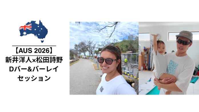 現地時間と日本時間の2/18(水)から2/22(日)に渡り、バーレイ・ヘッズで開催されるQS4000″Gold Coast Open”に出場するべく早めに家族で現地入りを果たした新井洋人が、同じ宿に滞在するパリオリンピック日本代表選手の松田詩野と共にDバーとバーレイヘッズで繰り広げたフリーセッションの模様を中心に収録した必見の1本となっております!
