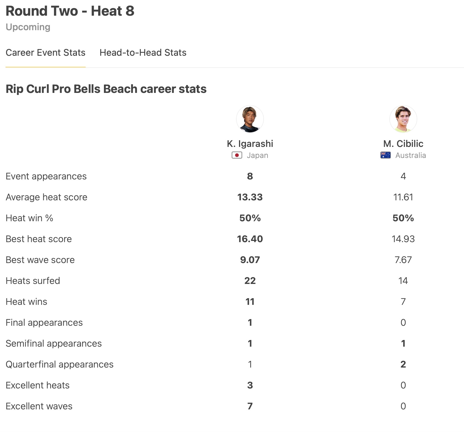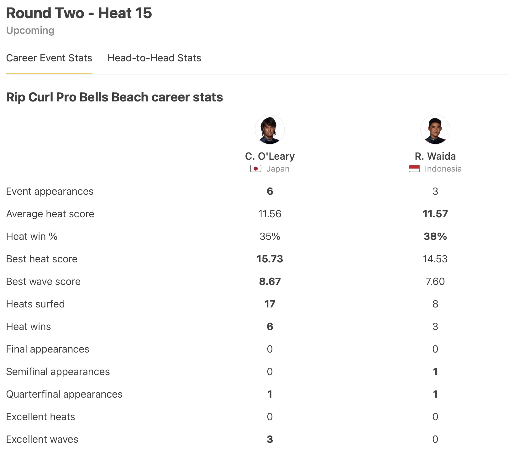 注目の日本代表選手たちは、今年から新しいフォーマットとなった中ラウンド2のヒート8では五十嵐カノアがMorgan Cibilicと、ヒート15ではコナー・オレアリーが和井田理央と対戦。
