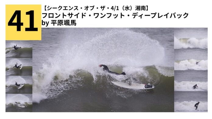 前日から吹き続けた南西のオンショアが北東のオフショアとなって迎えた4/1(水)エイプリルフールの朝の湘南エリアは全域に渡りオーバーヘッドのグッドコンディションに恵まれた。