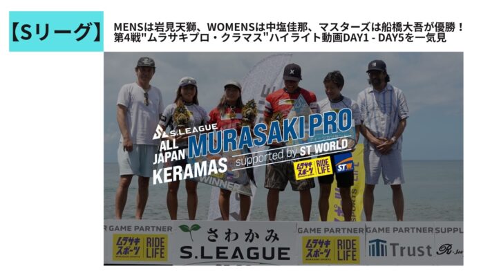 CT会場にもなるほどのワールドレベルの波がブレイクするバリのクラマスを舞台に4/4(土)まで開催されていたSリーグ第4戦”ムラサキプロ・クラマス”。