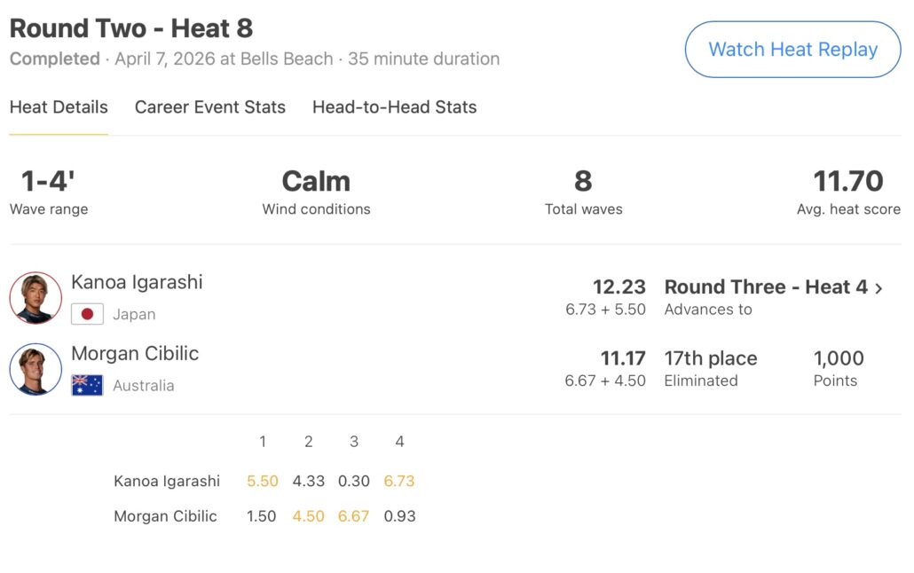 オーストラリアのウィンキーポップを会場に開催中のCT開幕戦”Rip Curl Pro Bells Beach”は、オフショアでセット頭オーバーのグッドコンしションに恵まれた現地時間と日本時間の4/9(木)にコンテストDAY5が行われ、WOMENSラウンド2の残りのヒートからスタートし、続けてMENSラウンド3の全ヒートを消化。