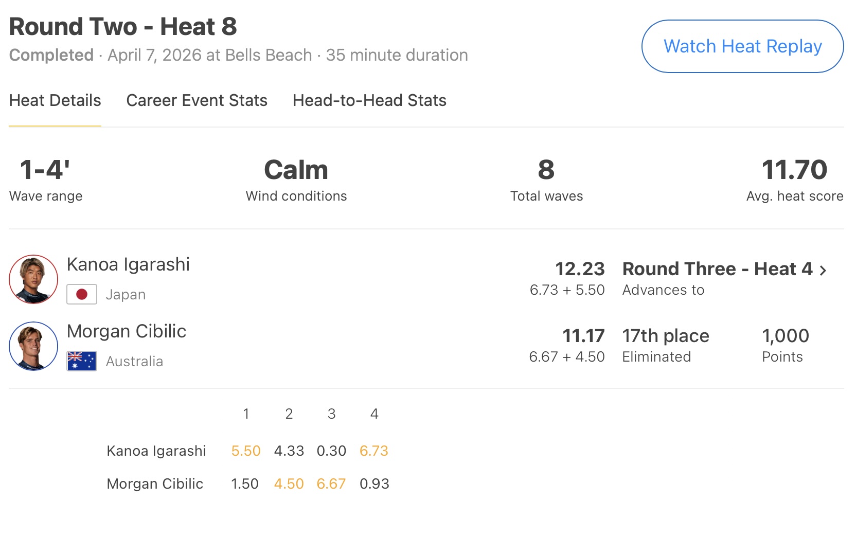 迎えるクォーターファイナルのヒート2ではGriffin Colapintoと対戦予定。