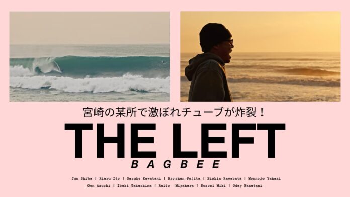 今回の作品では、先ほどの記事でご紹介したTHE RIGHTと連動したものとなっており、同じセッションのLEFT、すなわちグーフィーのぐりんぐりんのチューブ波での伊東李安琉、椎葉順、河谷佐助、藤田凌俊、川畑永芯、矢作紋乃丞、安室弦といったプロサーファーたちをはじめ高島伊吹、三木望未、宮原雷斗、永谷オダイといった注目のロコボーイズたちが繰り広げたセッションの模様を収録。